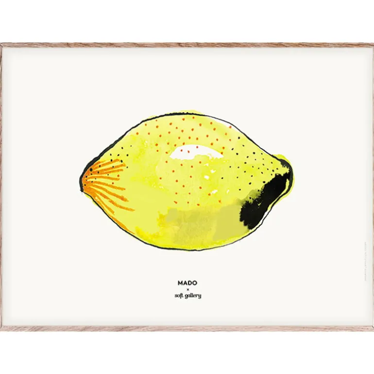 Lemon poster från danska märket MADO har en illustration med en stor, saftig och mycket gul citrusfrukt. Tillsammans med designstudion All The Way To Paris har MADO valt ut illustrationer ur tidigare kollektioner från det danska barnklädesmärket Soft Gallery.