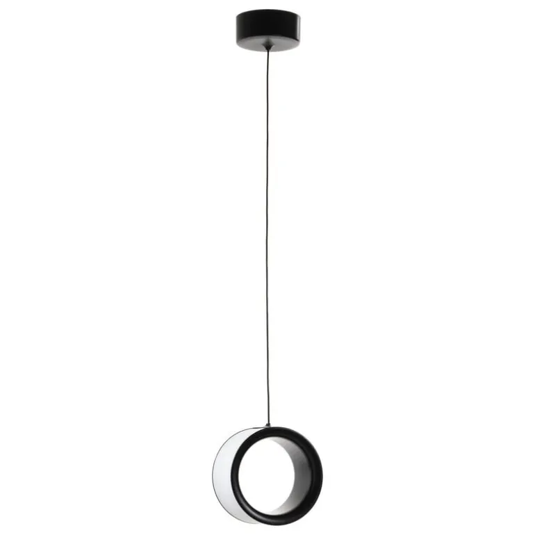 För att ytterligare understryka den ovanliga designen – som för att markera tomrummets gräns – har formgivarna beslutat sig för att placera LED-elementet runt lampans utsida istället för på insidan, som du annars kanske skulle ha förväntat dig. Det här komplicerade tekniska beslutet ger upphov till en effektfull grafisk bild som får dig att tänka på ett svart hål eller kanske en månförmörkelse, särskilt ur en viss vinkel där bara en mycket smal månskära syns lysa.