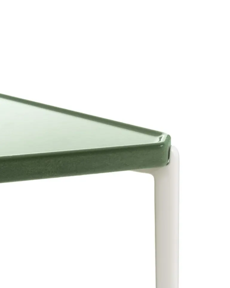 Magis Tambour-bord, formgivet av Ronan och Erwan Bouroullec är ett mångsidigt soffbord för både inomhus- och utomhusbruk. Soffbordet är konstruerat med en aluminiumram och en bänkskiva i betong, och kombinerar rå industriell estetik med en mild färgpalett. Praktiska detaljer, som de subtila kanterna på bordsskivan, sätter pricken över i:et till den övergripande designen.