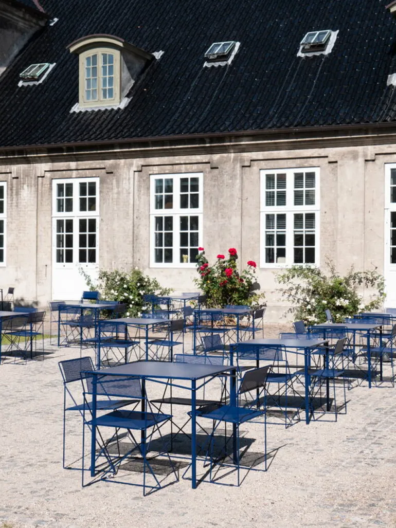 Den ikoniska stolen X-Line skapades ursprungligen redan 1977 av arkitekten Niels Jørgen Haugesen. Nu har danske Magnus Olesen sett till att den charmiga metallstolen är tillbaka i produktion. Stolen X-Line, som är tillverkad i tunt stål, är baserad på en enkel, geometrisk benkonstruktion som är formad som bokstaven X. Utförandet bjuder inte bara på stabilitet och styrka utan har också estetiska kvaliteter: den minimalistiska och industriella stilen passar i allt från köket och matsalen till offentliga lokaler och utemiljöer. Den praktiska stolen sparar även plats, eftersom upp till 12 stolar kan staplas på varandra.