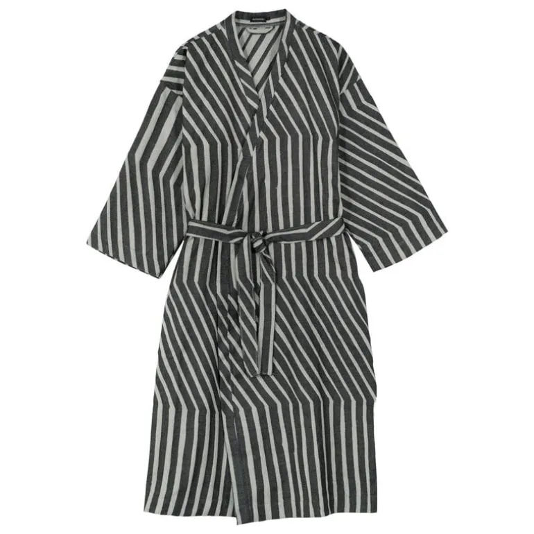 Den lätta morgonrocken är vävd i jacquardstickning och har ett avtagbart skärp, sidfickor och skärphållare i två olika höjder för bästa passform. Kalasääski är tillverkad av ekologisk bomull.