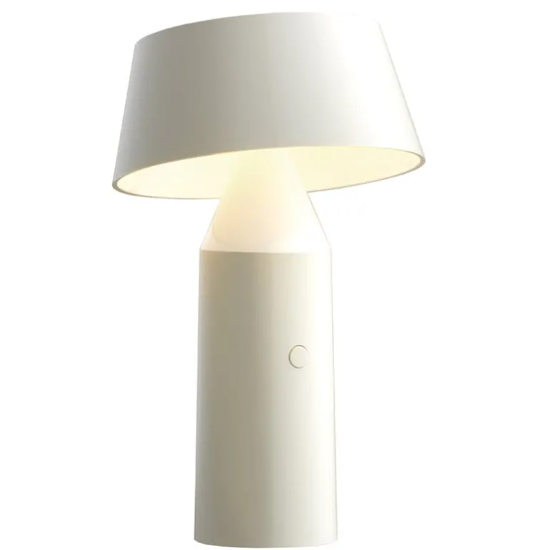 Marsets Bicoca är en bärbar och uppladdningsbar bordslampa som enkelt kan flyttas från en plats till en annan. Bicoca-lampan designades av Christophe Mathieu och fyller rummet med sitt mjuka ljus och livfulla energi.. Placera den i vardagsrummet, sovrummet eller köket och du kan även ta med den till terrassen, vinden, läshörnan eller någon annan plats utan elektricitet. Bicoca mäter 22,5 cm i höjd och har en stilren, geometrisk design med en vridbar lampskärm. Bicoca lanserades 2017 och kombinerar fransk vintage-estetik med modern teknik och moderna material. Lampan är tillverkad av lätt och hållbar polykarbonat och är utrustad med en dimmer och ett batteri med USB som ger ljus i 5-20 timmar.