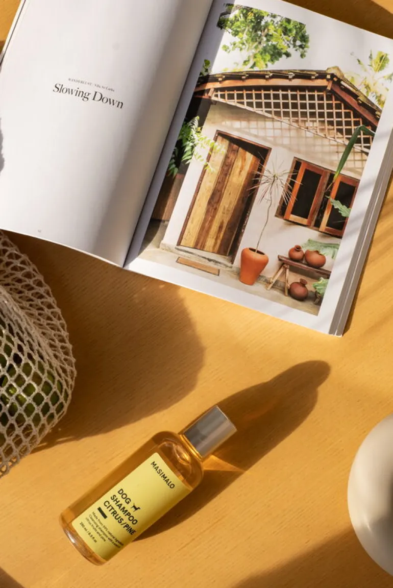 Masimalos hundshampoo håller din pälsiga väns päls ren, glänsande och frisk. Med en uppfriskande doft av citrus och tall, behandlar shampoot både din hunds och dina egna sinnen – för att tänka på de bästa promenaderna genom skogsstigar! Det ljusa shampoot kommer i en flaska gjord helt av växtbaserade material, vilket gör det skonsamt inte bara mot ditt husdjur utan också mot planeten.