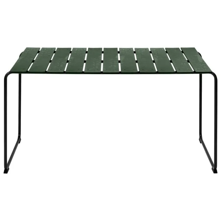 Trädgårdsbordet Ocean OC2 från det danska varumärket Mater är en del av dess prisbelönta Ocean-kollektion – en tolkning av utemöbelserien designad av Nanna & Jørgen Ditzel 1955. Förutom den exceptionellt harmoniska formen gör även materialen Ocean OC2-serien mycket unik: kollektionen har tillverkats med återvunna plastfat från öl i samarbete med den danska öltillverkaren Carlsberg. Sitsarna och bordsskivorna är formade av starka plastlameller, med den bekanta mörkgröna nyansen, och den luftiga designen kompletteras av en metallram med en finish i vapenmetall. Alla komponenter är återvinningsbara.