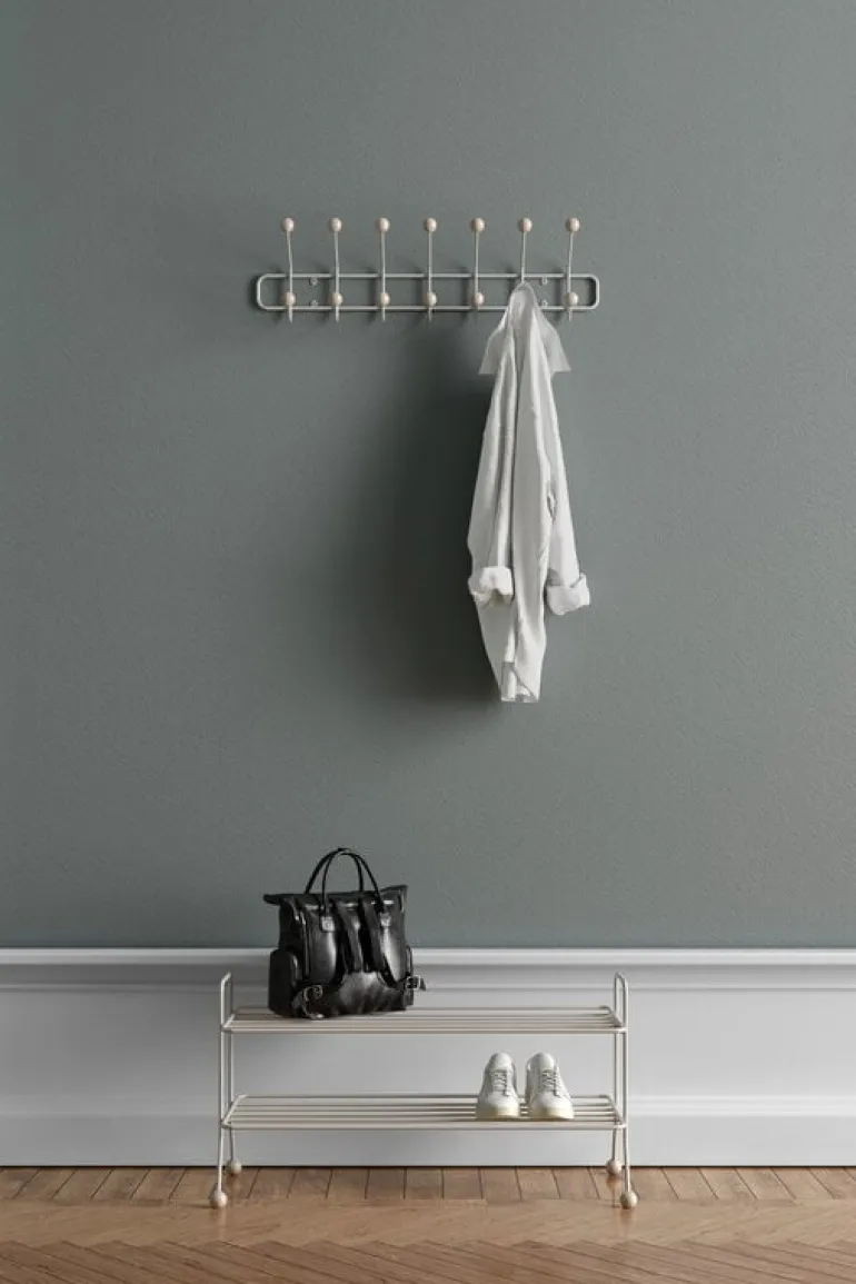 Skohyllan Bill, som designats av Louise Hederström för svenska Maze, ingår i en kollektion med moderna förvaringsmöbler som har en minimalistisk framtoning och som enkelt smälter in i vilken hall som helst. Skohyllan Bills geometriska design utgörs av en ram i återvunnen metall kombinerat med lekfulla krokar som kompletterats med runda träkulor. Komplettera din förvaringslösning med andra varor från Mazes Bill-kollektion.