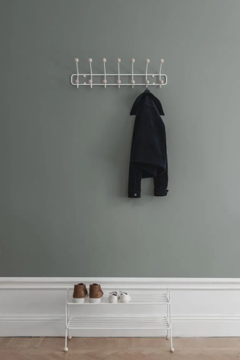 Skohyllan Bill, som designats av Louise Hederström för svenska Maze, ingår i en kollektion med moderna förvaringsmöbler som har en minimalistisk framtoning och som enkelt smälter in i vilken hall som helst. Skohyllan Bills geometriska design utgörs av en ram i återvunnen metall kombinerat med lekfulla krokar som kompletterats med runda träkulor. Komplettera din förvaringslösning med andra varor från Mazes Bill-kollektion.