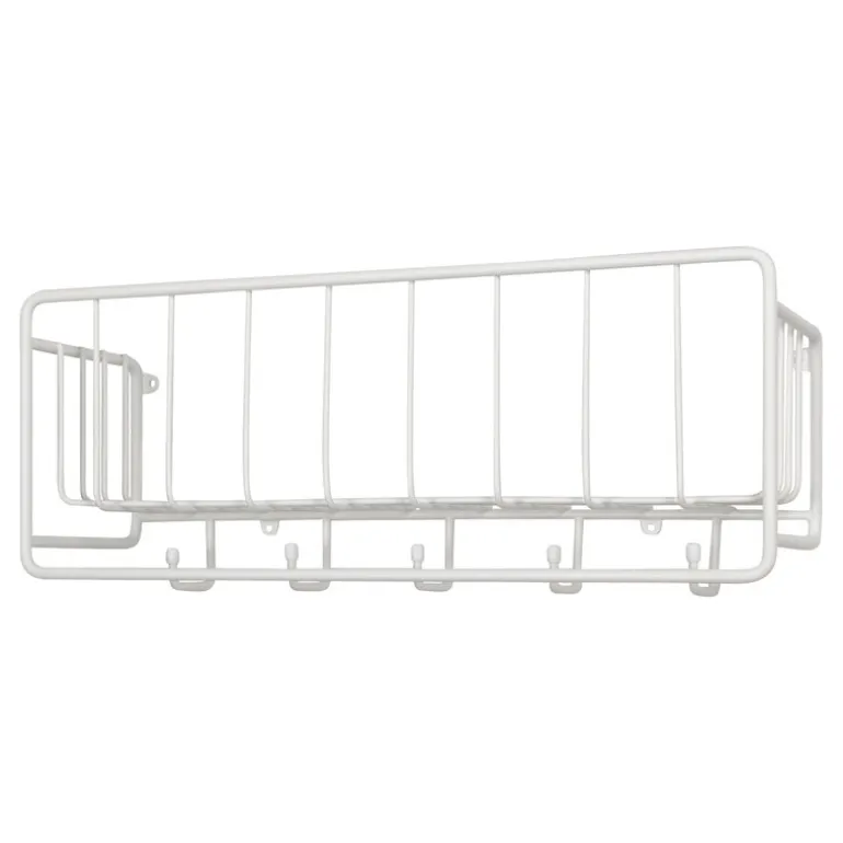 Hyllan Midtown från svenska Maze är en geometrisk väggmonterad hylla med en funktionalism-inspirerad form. Förutom små föremål kan du använda Midtown för att hänga upp kläder, väskor och accessoarer, tack vare de fem metallkrokarna, som sitter under hyllan. Hyllan Midtown har designats av den välrenommerade designern Álvaro Diaz Hernandez och är tillverkad i Sverige av delvis återvunnet material.