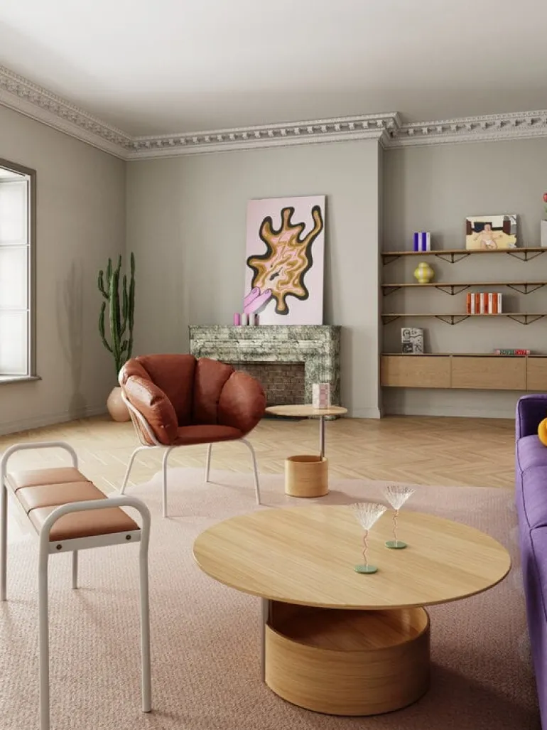 Skåpet Pythagoras från svenska Maze är en del av ett unikt hyllsystem som kombinerar matematikens precision med designens kreativa möjligheter. Kollektionen Pythagoras, designad av Gustav Rosén, inspirerades av Pythagoras triangelteorem, vilket gör triangeln till hyllsystemets bas och mest väsentliga element.