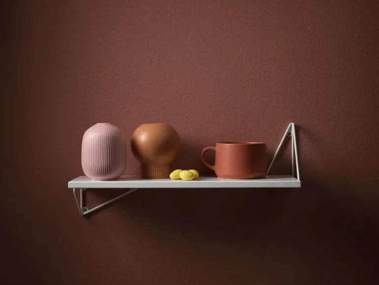 Pythagoras XS levereras med två väggkonsoler som tillverkats av 100 % återvunnet material. Väggkonsolerna kan monteras antingen nedanför eller ovanför hyllan i fyra olika positioner – och deras luftiga design lämnar dessutom plats för tomt utrymme. Lek, experimentera och skapa den perfekta hyllan för dina egna behov!
