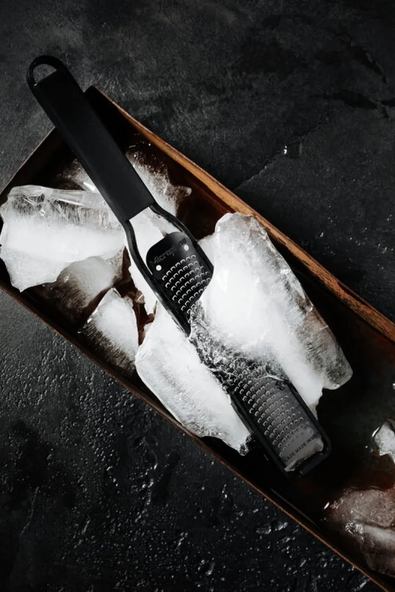 Microplanes Black Sheep Series Zester kan användas för att riva alla sorters citrusfrukter och hård ost, ingefära, choklad, muskot och tryffel till en fin rivning. Det eleganta, helt svarta rivjärnet är tillverkat av rostfritt stål med en PVD-beläggning för extra repmotstånd, och det halkfria gummihandtaget säkerställer ett bra grepp. År 2022 vann Black Sheep Series rivjärnen Red Dot Award.