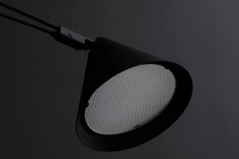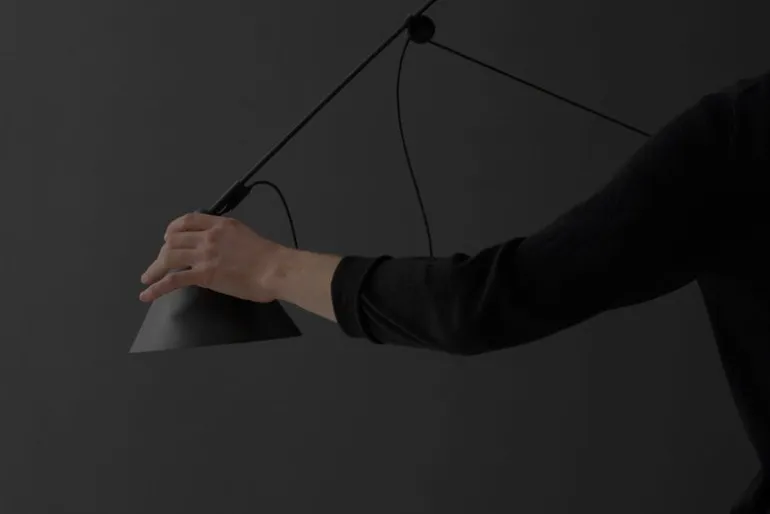 AYNO, som utvecklades av Stefan Diez, har ett fängslande uppfinningsrikt och vackert minimalistiskt utseende. Armaturen består av en konformad skärm och en svart sladd fäst på en smal glasfiberstav med två ringar för justering. Hemligheten ligger i lampans enkla, men effektiva, kontroll: ljusets riktning styrs genom att skjuta på ringarna på sladden. I takt med att ringarna flyttas drar de åt elkabeln, som böjer glasfiberstaven till en båge. Vid behov kan ljusets riktning finjusteras genom att vrida skärmens kupol.