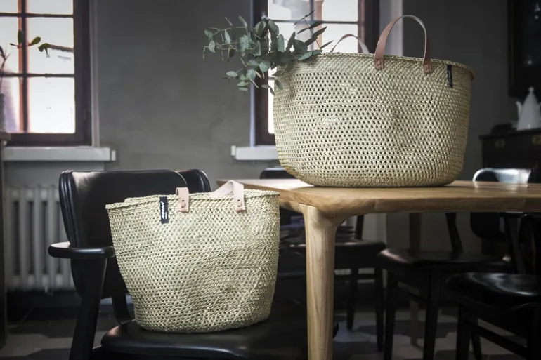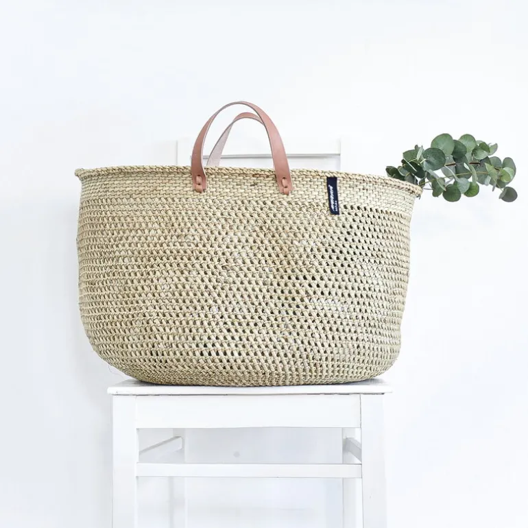 Mifukos Iringa-korg förenar traditioner från hela världen: Skandinavisk design och tanzaniskt hantverk. Korgen, som är tillverkad av naturligt milulu-gräs, är hållbar och perfekt för tvätt eller förvaring av allt från leksaker till tidningar, men den kan också användas som en praktisk shoppingkorg eller strandväska. De korta läderhandtagen ger korgen en vacker avslutande touch och gör den lätt att bära med sig. De vackra och unika korgarna är handgjorda i Tanzania, och varje stycke är signerat av sin vävare.