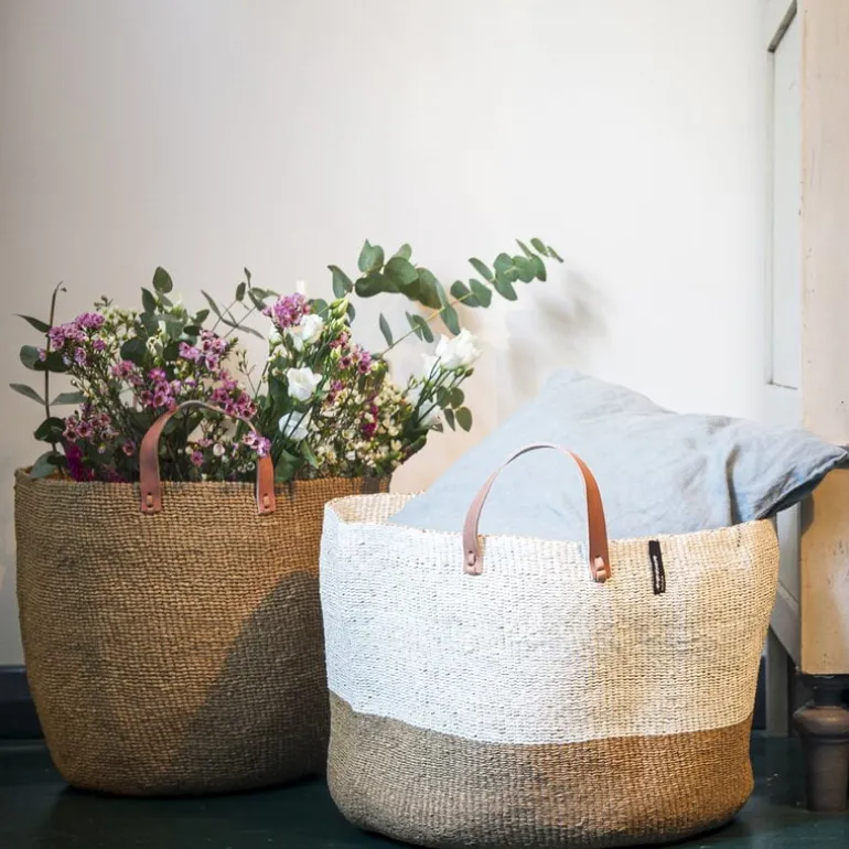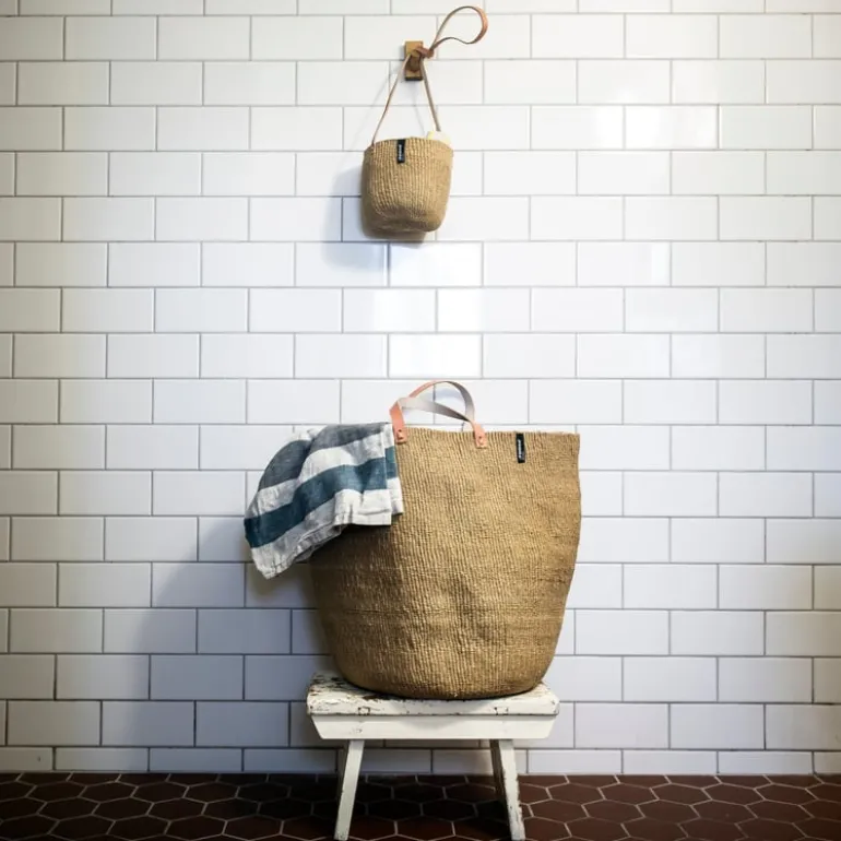 Mifukos Kiondo marknadskorg förenar traditioner från hela världen: Skandinavisk design och kenyansk hantverk. Korgen, som är vävd av papper, är hållbar och perfekt för tvätt eller förvaring av leksaker och hushållsartiklar, men den kan också användas som en praktisk shoppingkorg eller strandväska. De korta läderhandtagen ger korgen en vacker avslutande touch och gör den lätt att bära med sig. De vackra och unika korgarna är handgjorda i Kenya, och varje stycke är signerat av sin skapare.