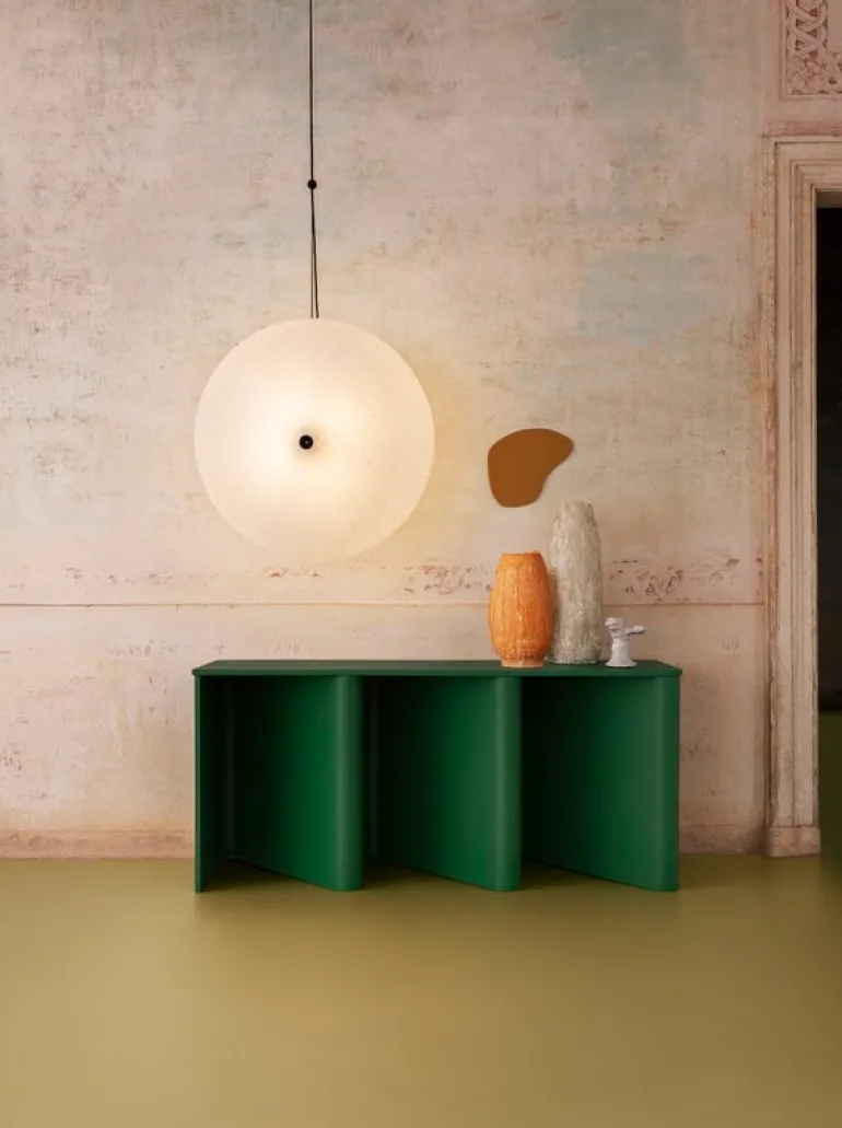 Miniforms pendel Rificolona har en tidlös design som kombineras med möjligheterna hos återvunna material. Den lätta skärmen, som är tillverkad av återvunnen polyeten, hänger försiktigt från en sladd och låter rummets luftflöde röra den fritt. Materialet ger lampans ljus en charmigt ojämn och unik textur som förstärker Rificolonas distinkta karaktär. Perfekt för både offentliga miljöer och privata hem, tar Rificolona graciöst sin plats som ett imponerande blickfång i varje rum, oavsett om ljuset är tänd eller släckt.