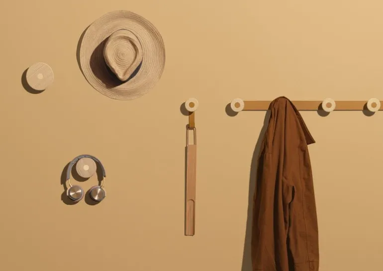 Klädhängaren Bloom Wall från Mizetto erbjuder en stilren och minimalistisk förvaringslösning i hallen eller sovrummet. Den eleganta väggkroken består av en stadig metallram och fem träknoppar som liknar blomblad. Du kan använda de runda knopparna för att hänga upp inte bara väskor och hattar, utan även tyngre vinterjackor. Om du behöver ännu mer förvaringsutrymme på väggen kan du kombinera klädhängaren Bloom Wall med en enkel krok från samma serie. Lek med olika färgnyanser på krokar och hängare för att skapa en personlig touch i inredningen!