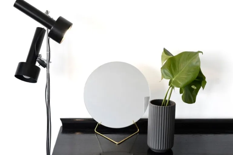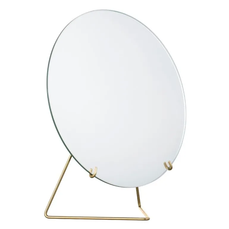 Den stående spegeln från Moebe består av runt spegelglas utan ram och en enkel metallbas. Kombinationen av två kontrasterande material ger ett luftigt intryck: diskret och fängslande på samma gång. Moebes stående spegel fungerar lika bra som sminkspegel eller som en dekoration som leker med omgivningens färger, ljus och former.