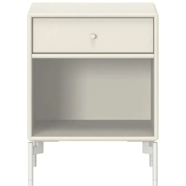 Montana Furnitures Dream är ett klassiskt och enkelt nattduksbord som även kan användas som sidobord i andra rum. Det står på tunna metallben och består av en låda och en rymlig, öppen hylla.