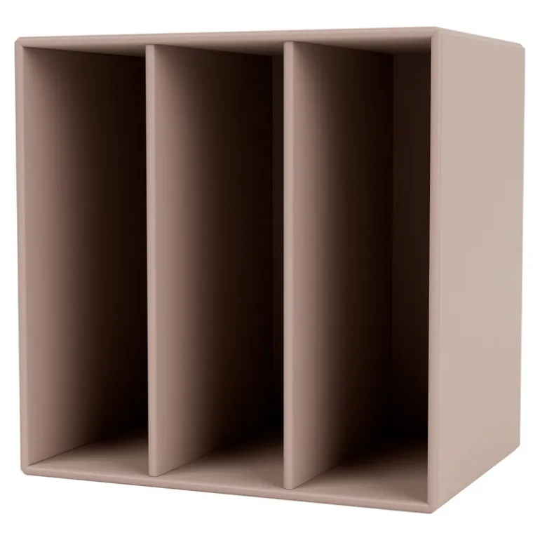 Montana Mini-modulen, bestående av tre hyllfack, är en enkel men extremt multifunktionell förvaringsmodul som kan monteras på väggen eller placeras på golvet, antingen individuellt eller i grupper. Modulen monteras på väggen genom att hänga den på den medföljande upphängningsskenan med små distanser – på detta sätt kan du enkelt omorganisera modulerna utan några verktyg och justera dem genom att rotera distanserna. Alla hörn på modulen har förborrade hål, vilket gör att du kan montera den på det sätt du vill. Inkluderade är också halkskydd för att stapla modulerna ovanpå varandra.