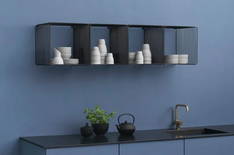 Panton Wire-systemet låter dig skapa din egen variant av förvaringslösning i husets alla rum. Du kan arrangera modulerna, hyllorna och panelerna i fristående bokhyllor, hänga dem på väggen som ett nattduksbord eller kökshylla, eller göra dem till rumsavdelare. Oavsett hur du väljer att göra blir resultatet detsamma – industriellt, elegant och luftigt på samma gång. Montanas produkter har tillverkats i Danmark på företagets egen fabrik.