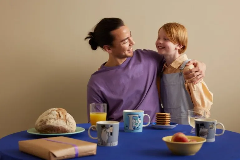 Muggarna, skålarna och tallrikarna i Arabias Moomin Classics-kollektion avbildar karaktärerna i Mumindalen framifrån och bakifrån. De första delarna av Arabias Muminporslin utgavs redan på 1950-talet, medan produktion i en mer omfattande skala inleddes först 1990. Alla illustrationerna skapas av Tove Slotte som hämtar inspiration från Tove Janssons original. Själva formen kommer från Arabias tidlösa Teema-porslin i keramik som designats av Kaj Franck.