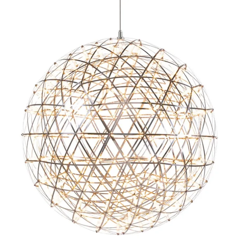 Moooi:s taklampa Raimond II R61 för med sig den unika skönheten av en stjärnklar natt in i ditt hem. Designad av matematikern Raimond Puts, består hänglampan av ett perfekt runt stålnät upplyst av en mängd små LED-lampor som liknar stjärnor som blinkar på natthimlen. Skapa den perfekta atmosfären i ditt hem med den dimbara Raimond-taklampan eller kombinera flera lampor för att bilda en hel konstellation som påminner om fyrverkerier som lyser upp himlen.
