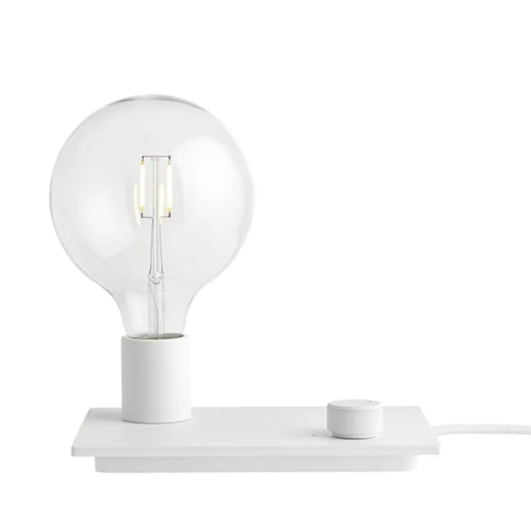 Bordslampan Control från Muuto har en lekfull design som refererar till hifi-utrustning och industriella kontrollpaneler. Den minimalistiska lampan består av en enkel E27-lampa och en liten ratt som svenska TAF Studio har placerat på en rektangulär metallbricka. Tack vare sin kompakta storlek kan lampan placeras på nattduksbord, fönsterbrädor, hyllor och andra begränsade utrymmen. Control är ett snyggt inredningsobjekt som ger jämn belysning och som även lyser upp mörka hörn.