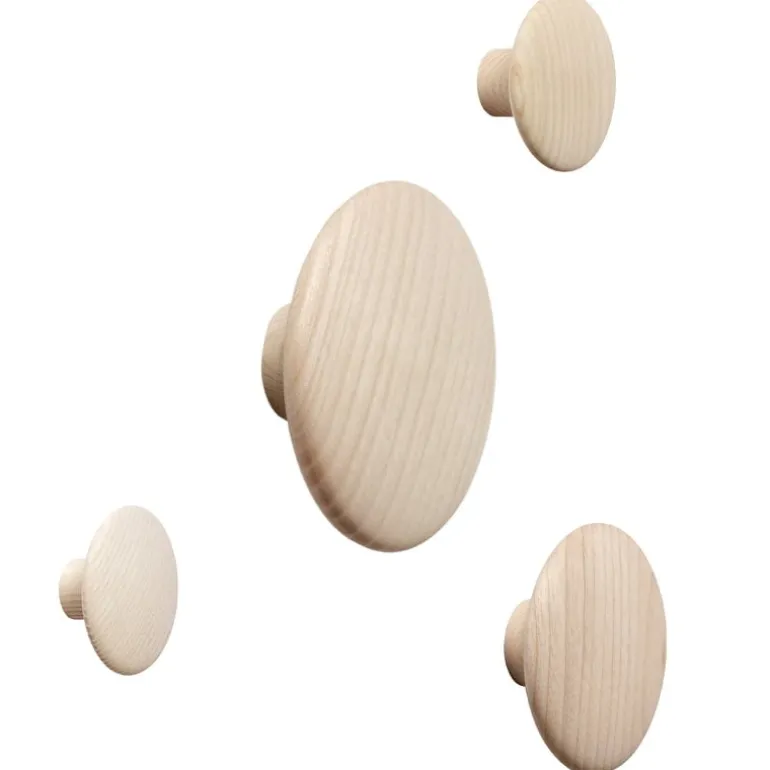 Muutos Dots Wood-krokar, som designats av Lars Tornøe, är ett utmärkt sätt att hänga dina kläder, väskor, handdukar och accessoarer – du behöver bara bestämma vad och var! Dots Wood-krokarna är tillverkade i lent polerat trä format som en cirkel, och skapar en livfull och lekfull atmosfär i hallen, köket eller sovrummet. Den populära Dots-familjen kännetecknas av personliga krokar i olika storlekar, färger och material – du kan arrangera ett unikt grafiskt mönster på väggen, eller förnya en förvaringsmöbel genom att använda krokarna som handtag på skåp eller lådor. Var inte rädd att använda fantasin!