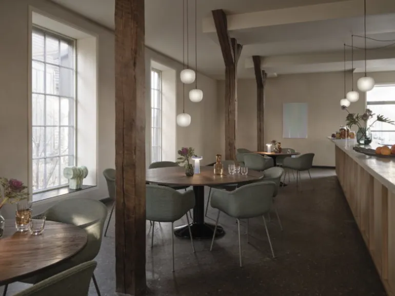 Midst-bordets tidlösa och runda utförande gör sig utmärkt i rad olika inredningsmiljöer och inredningsstilar, och tack vare den enbenta konstruktionen är det enkelt att klämma in ytterligare en person runt bordet. Förutom att vara ett utmärkt komplement i hemmets matvrå kan det här tåliga och robusta bordet användas i restauranger eller som konferensbord på kontoret.