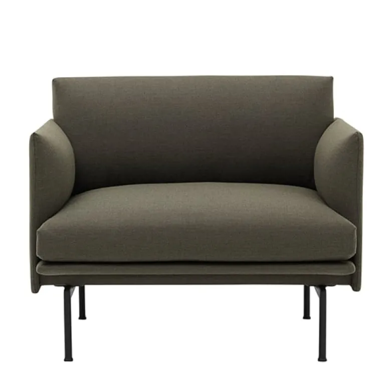 Muutos fåtölj Outline är en slående kombination av bekvämlighet, elegans och rena linjer. Torbjørn Anderssen och Espen Voll ville skapa en kollektion inspirerad av modernistisk arkitektur. De olika elementens samspel i soffan och fåtöljen har inspirerats av byggnadsstrukturer, och de överlappande delarna tillsammans med de smala benen ger Outline en lätt och ledig silhuett. Helhetsintrycket är stillhet och rofylldhet. I Outline-kollektionen ingår en rad olika storlekar och typer av soffor och stolar klädda i tyg eller läder av hög kvalitet.