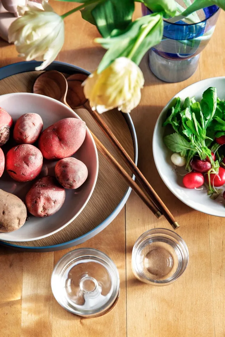 Muutos bricka Platform är en vacker kombination av skandinavisk stil och japanskt hantverk. Platform-brickan har en rund platta i ekfaner och små ben. Den kan användas som serveringsbricka, fruktskål eller som en bas för prydnader. Brickan Platform designades av Sam Hecht och Kim Colin 2017.