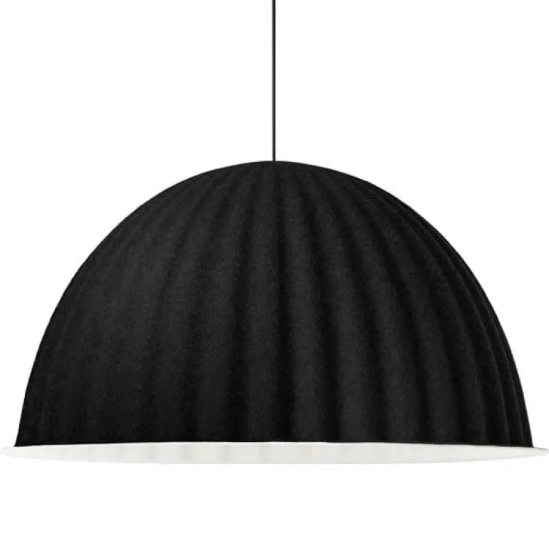 Muutos pendellampa Under the Bell har en stor rund skärm som tillverkats i filt av återvunnen plast. När den hängs över ett bord eller i en öppen miljö skapar Under the Bell en egen plats inom det större utrymmet. På detta sätt omfamnar och skyddar lampan bordet och personerna under den – både fysiskt och på en abstrakt nivå. Materialet absorberar ljud och förbättrar rummets akustik – vilket gör Under the Bell till en perfekt armatur ovanför matbordet eller på andra ställen där människor samlas för att samtala. Under the Bell-kollektionen designades för Muuto av Iskos-Berlin.