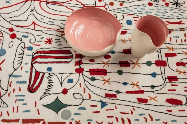 Nanimarquinas Hayon x Nani-matta är en fängslande blandning av former och nyanser som vid första anblicken kan se ut som ett harmoniskt virrvarr. Men när du tittar närmare kommer du att upptäcka bekanta former. Inom de lekfulla, tecknade mönstren kan du se sköldpaddor, fiskar, läppar, händer och till och med en figur som ser ut lite som en människa och lite som en fågel. Den färgglada ullmattan är en perfekt reflektion av den spanska designern Jaime Hayóns unika stil: en glad blandning av nyckfullhet och sofistikering, vilket gör den till ett perfekt tillskott i alla utrymmen.