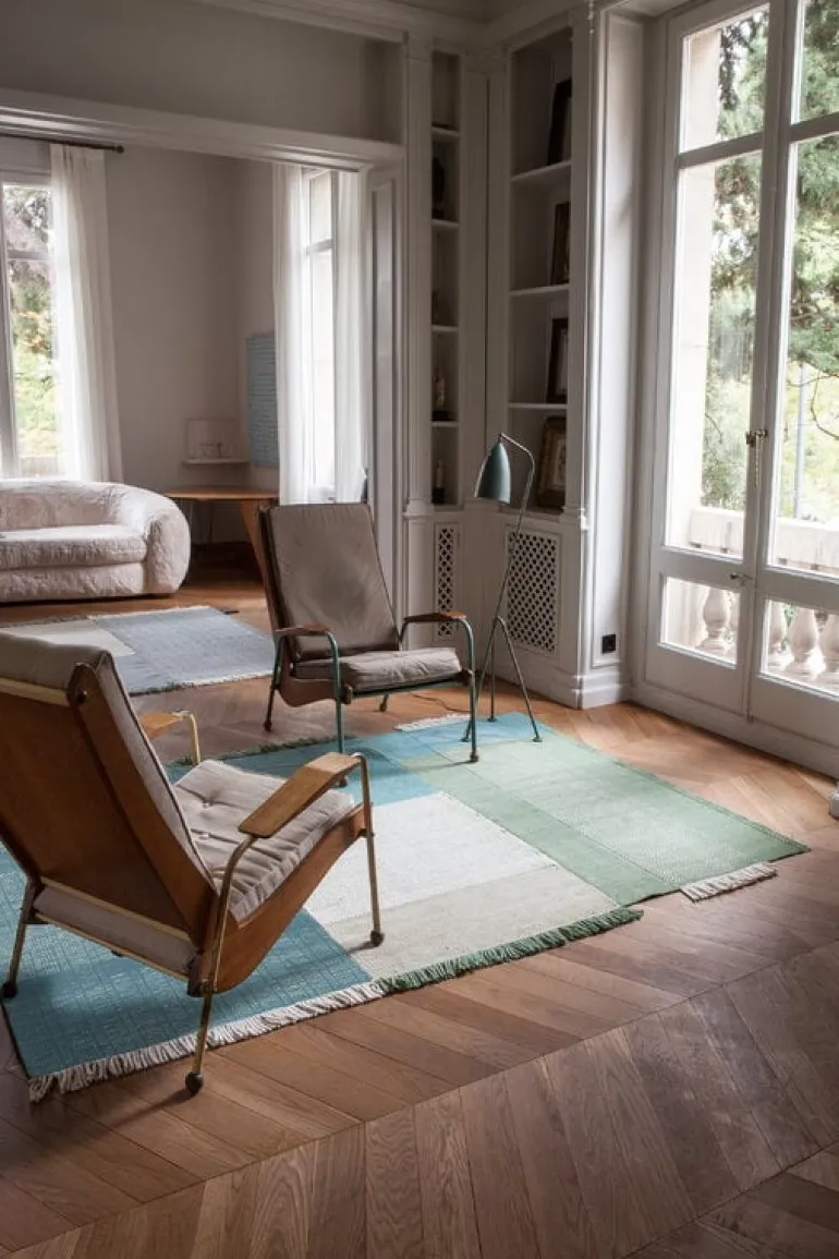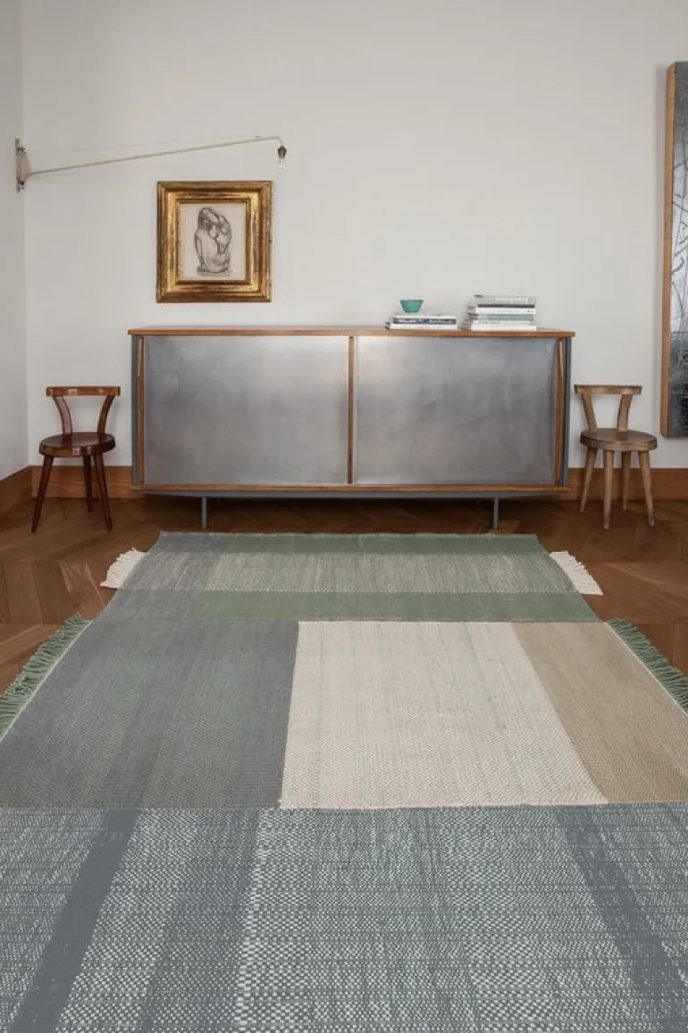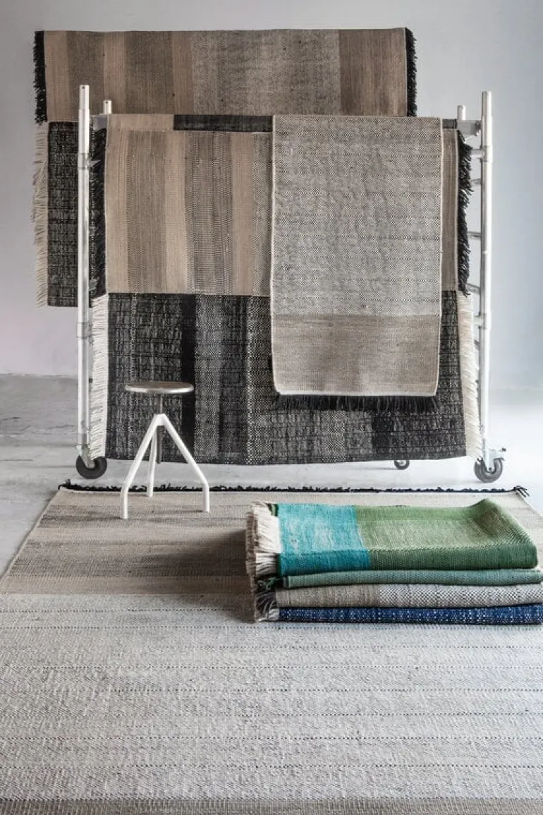 Mattan Tres från Nanimarquina utmärker sig med en design som ger intrycket av att flera mattor har smält samman till en. På sätt och vis är det sant: mattan Tres är gjord av tre olika material. Ull, ullfilt och bomull har kombinerats för att skapa en look som är både unikt oregelbunden och vacker, vilket gör mattan till ett härligt tillskott i hemmet såväl som i offentliga miljöer. Den livfulla mattan är handvävd med traditionella indiska dhurriemetoder. Resultatet är ett föremål som är både lätt och tåligt, vilket gör att det är lika praktiskt som det är vackert.