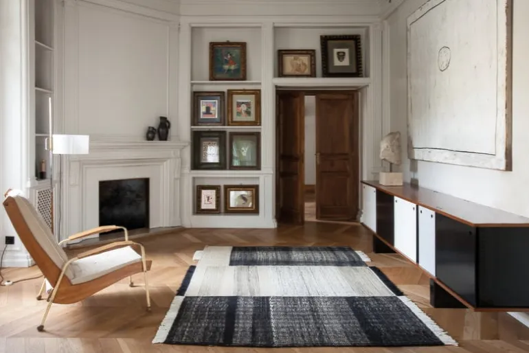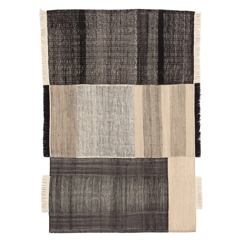 Mattan Tres från Nanimarquina utmärker sig med en design som ger intrycket av att flera mattor har smält samman till en. På sätt och vis är det sant: mattan Tres är gjord av tre olika material. Ull, ullfilt och bomull har kombinerats för att skapa en look som är både unikt oregelbunden och vacker, vilket gör mattan till ett härligt tillskott i hemmet såväl som i offentliga miljöer. Den livfulla mattan är handvävd med traditionella indiska dhurriemetoder. Resultatet är en lätt och tålig matta som är lika praktisk som den är vacker.