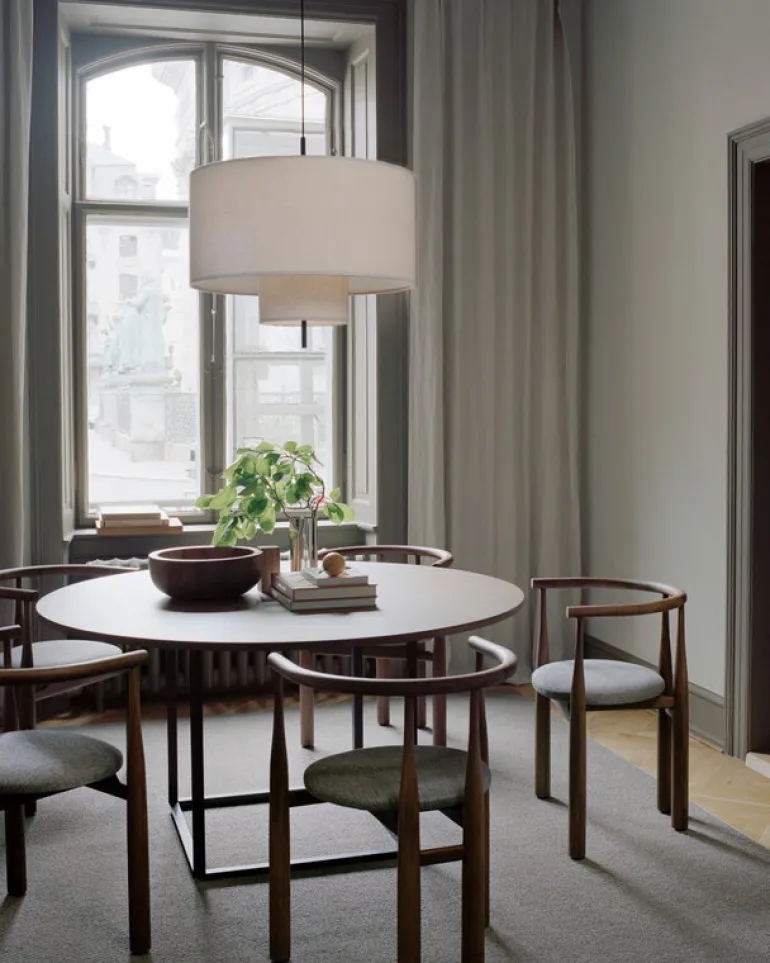 New Works’ Bukowski stol är avskalad från allt onödigt: det finns inget extra med den förenklade stolen och den verkar inte behöva något mer. Stolen, som har fått sitt namn från designern Steven Bukowski, består av smala träben med ett lätt stoppat säte i mitten. Stolens ryggstöd är ergonomiskt formad och bekväm för att stödja sittarens rygg. Den charmiga kombinationen av valnöt och textil gör Bukowski stolen lämplig för matbordet i köket, i hemmakontoret eller som en extra sittplats i vardagsrummet. Den vackra stolen hittar också sin plats i offentliga utrymmen som restauranger, hotelllobbier eller mötesrum.