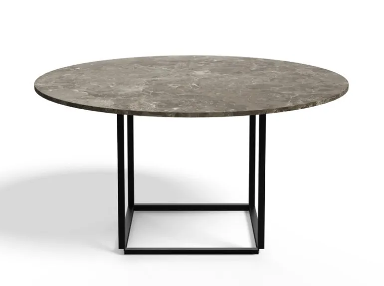 Florence matbord från New Works består av en kubisk stålram som stödjer en rund bordsskiva i grå marmor. Det smala och unika Florence är ett utmärkt matbord i olika interiörer, från hushåll till caféer och restauranger.