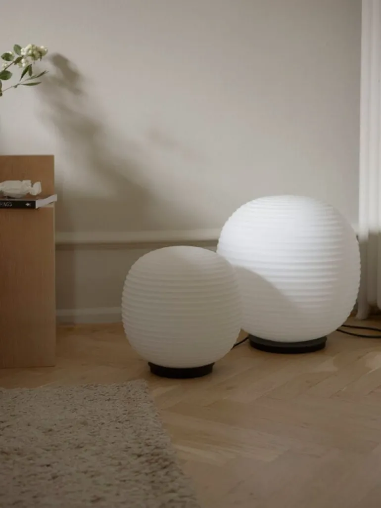 New Works golvlampa Lantern Globe, som designades av Torbjørn Andersson och Espen Voll, är väldigt lika traditionella asiatiska rispapperslampor. Men den vackra skärmen är inte tillverkad i papper, utan i tunt, frostat opalglas. Den enkla och behagliga designen gör lampan passande för olika utrymmen, både i privata hem och i offentliga miljöer, på golvet eller bordet.