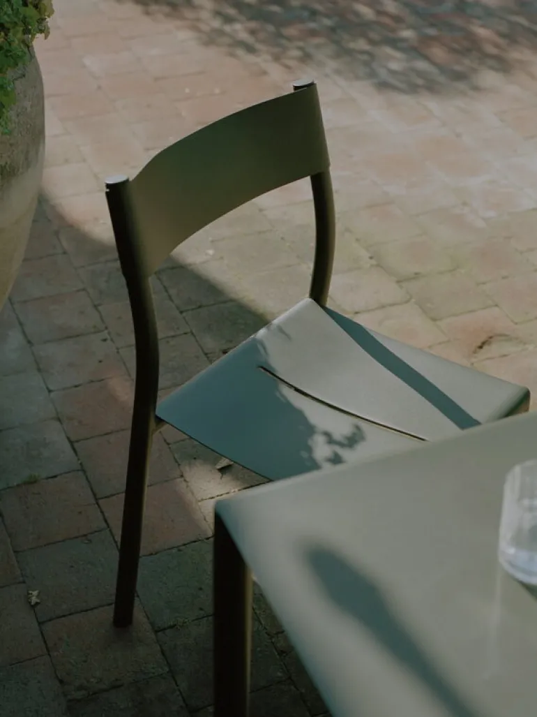 New Works stol May är perfekt att försköna utemiljön med, såväl på balkongen och i trädgården som på terrassen på sommarstället. Den stilrena stolen utmärker sig inte bara på grund av sin eleganta estetik , utan också för sina praktiska egenskaper – den kan enkelt staplas och därmed vinterförvaras, och är väldigt enkel att hålla ren.