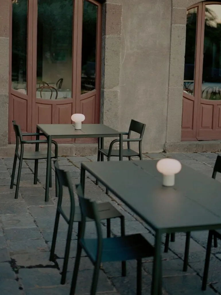 May-serien har formgivits av Hannes & Fritz för New Works och lyfter din utemiljö med sina lätta men samtidigt robusta altanmöbler. Altanstolarna och trädgårdsborden i May-kollektionen är tillverkade av pulverlackerat stål som står emot sommarens skiftande väderförhållanden, från kraftiga regnskurar till gassande sol.