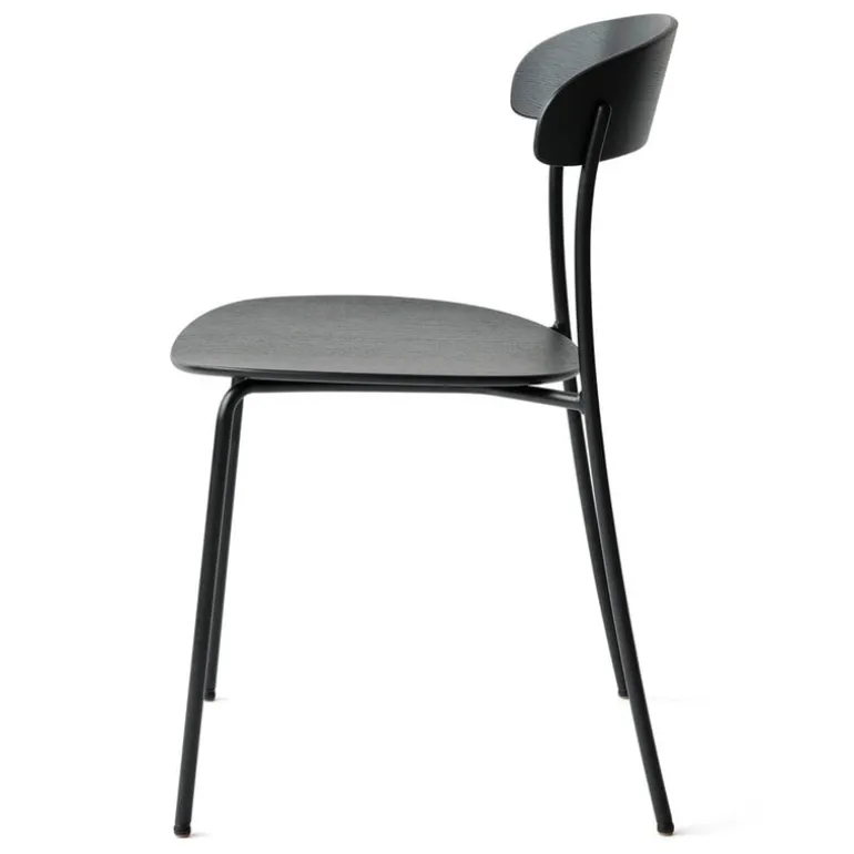 New Works karmstol Missing, som designades av Regular Company, är en elegant tolkning av den klassiska, stapelbara caféstolen. Den karakteriseras av sina mjuka kurvor och tunna linjer. Den raffinerade stolen består av endast en tunn stålram och två träbitar som bildar sits och ryggstöd. Allt onödigt har skalats bort och det som är kvar är en tredimensionell version av en skiss. Missing är enkel men fängslande möbel, med en subtil och distinkt karaktär.