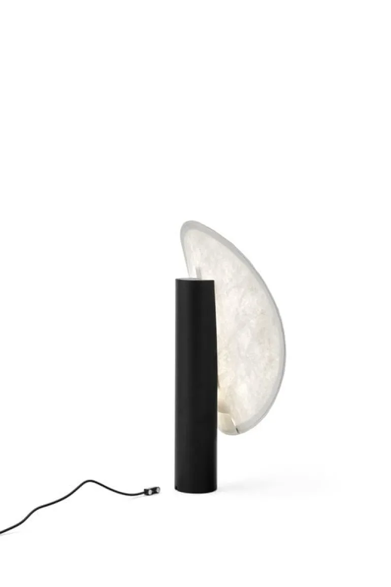 Den bärbara bordslampan Tense från New Works är som ett moln som svävar på ett bord, och skapar ett mjukt ljus och en etisk atmosfär i vilket utrymme som helst. Designad av Panter & Tourron, har Tense bordslampa en skulptural aluminiumbas och en skärm tillverkad av återvunnet Tyvek, ett material som filtrerar ljus liknande papper eller tunn tyg. Tack vare den sladdlösa designen kan du enkelt flytta lampan dit ljus behövs.