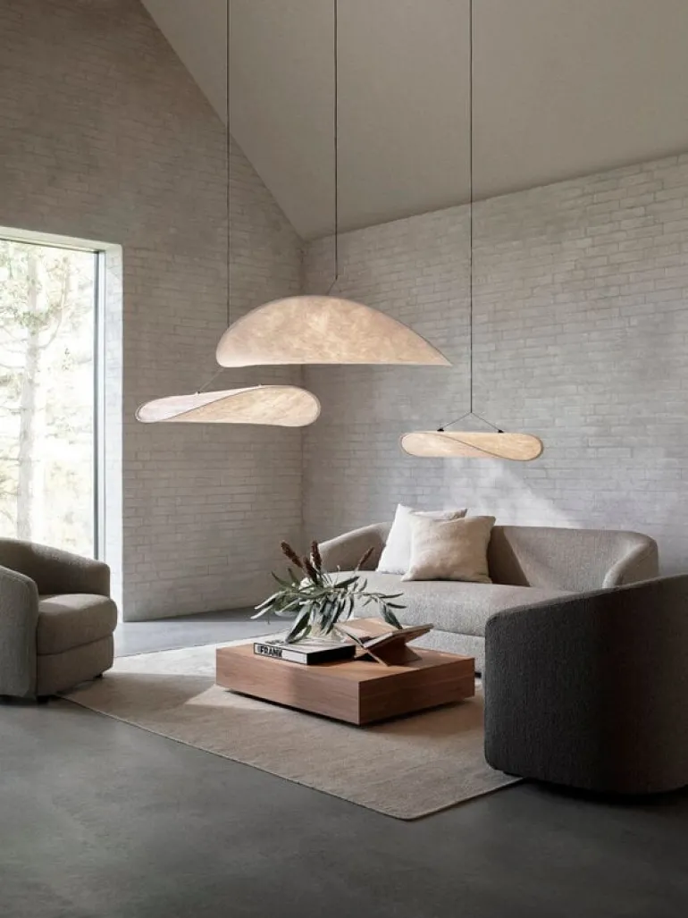 Pendellampan Tense av New Works ser ut som ett moln som flyter i mitten av rummet och skapar ett mjukt ljus och en eterisk atmosfär i alla rum. Tense är designad av Panter & Tourron och är tillverkad av återvunnen tyvek, ett material som filtrerar ljuset likt papper eller tunt tyg.