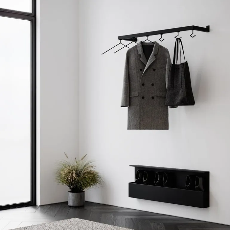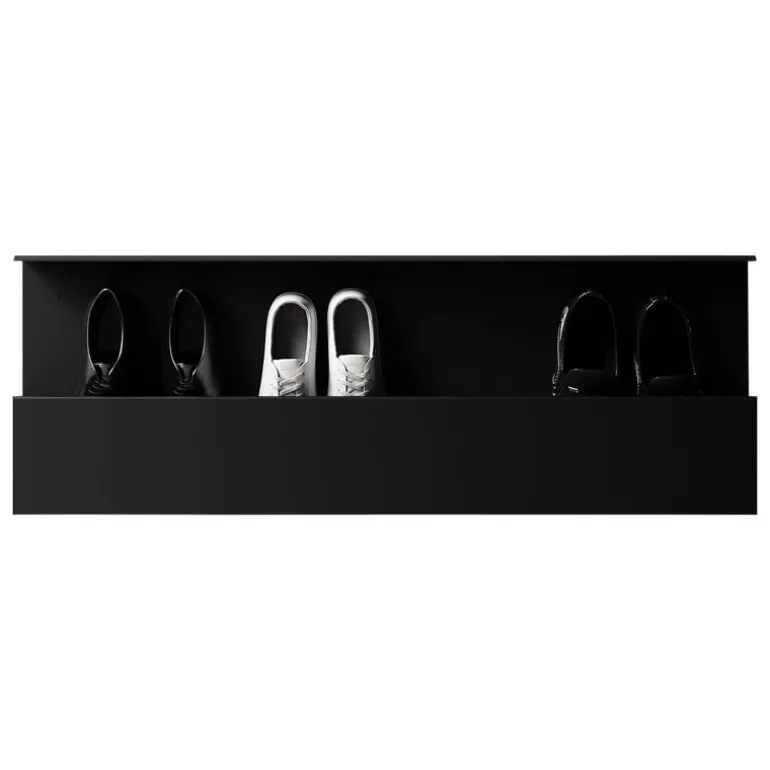 Nichba skohylla för med sig en touch av nordisk minimalism och industriell känsla till din entré, hall eller walk-in-garderob. Hyllan, som är tillverkad av pulverlackerat rostfritt stål och monteras på väggen, är designad för att hålla dina skor i ordning och ditt golv fritt från oordning. Skohyllan designades av Nichlas B. Andersen, grundare av Nichba, och tillverkas i Danmark av skickliga hantverkare och metallarbetare.