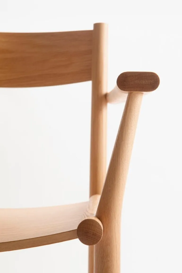 Akademia-stolen med armstöd från Nikari är en harmonisk och förfinad stol i ek, designad av Wesley Walters och Salla Luhtasela, även kända som Studio Kaksikko. Den balanserade och organiska utformningen av Akademia-stolen har influerats av skandinavisk designarv, japansk estetik samt den enkla och ärliga Shaker-stilen. Karaktäriserad av mjukt rundade former kan Akademia-stolen med armstöd användas vid matbordet eller skrivbordet, eller som en enskild sidostol i vilket rum som helst. Som namnet antyder, kommer Akademia-stolen från den akademiska världen – stolen var ett resultat av Wesley Walters magisteruppsats vid Aalto-universitetet i Helsingfors.