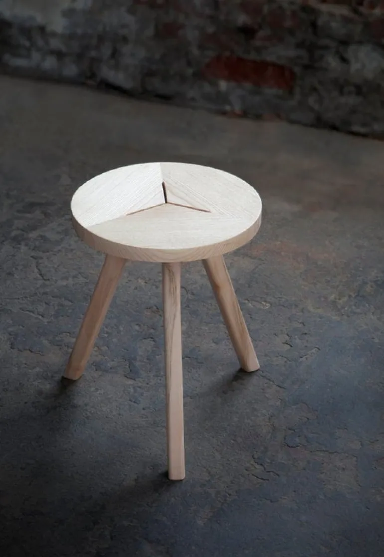 Pallen från Nikari designades av Aamu Song & Johan Olin. Den är gjord av askträ och antar formen av trädgrenar som växer i skogarna i Fiskars i Finland. Den vackra pallen fungerar både som extra sittplats och som ett litet bord bredvid en fåtölj eller i sovrummet.