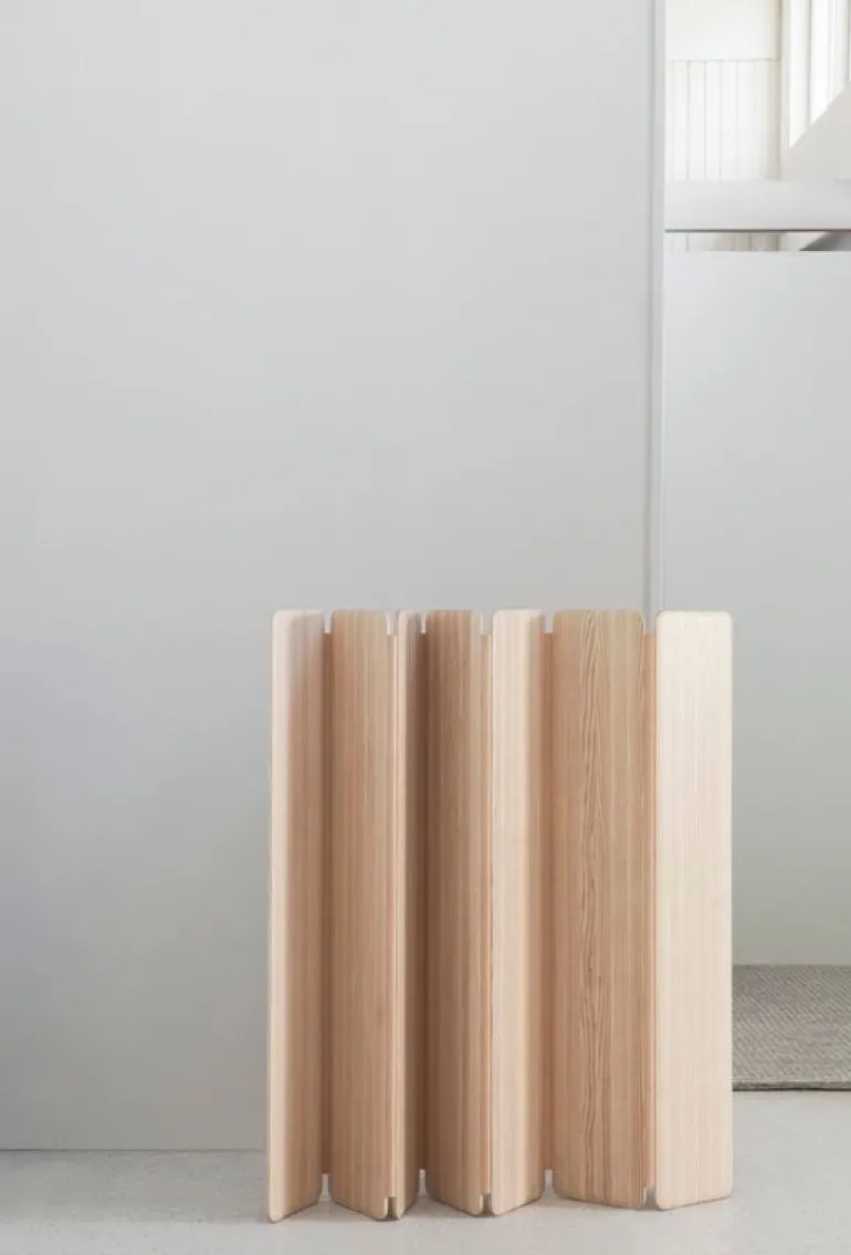Rumsavdelaren från Nikari ger en harmonisk och vacker touch till rummet och hjälper till att utnyttja utrymmet mer effektivt. Det var 2018 som Cecilie Manz designade Separat, som består av tunna paneler i askträ med träets naturliga ådring. Tack vare de naturligt garvade gångjärnen i läder mellan panelerna kan Separat formas och vikas så att den passar på många olika platser. Den flyttbara rumsavdelaren är perfekt för klädombyten, att ha på kontoret eller i barnkammaren, och dess tilltalande yttre skänker även ett lugn i större utrymmen.