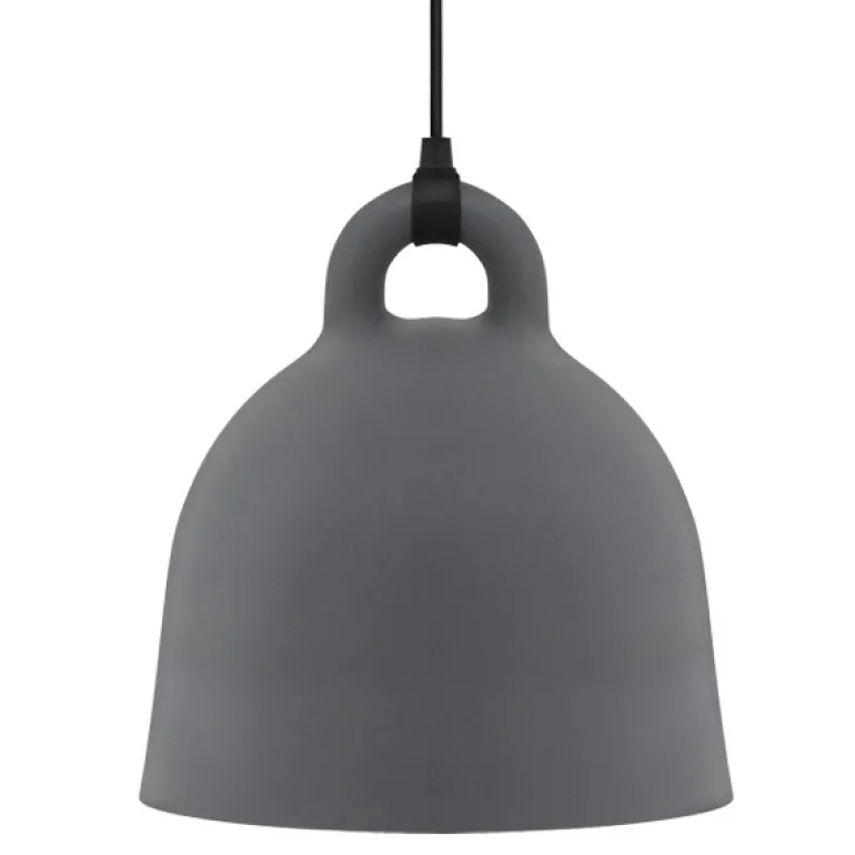 Pendellampan Bell av Normann Copenhagen liknar en gjuten kyrkklocka som hänger i en tunt rep. Formgivarna Andreas Lund och Jacob Rudbeck från Danmark har gett den mattbelagda Bell-lampan ett enkelt men distinkt utseende. Den vita insidan ger ett mjukt och behagligt ljus och övergången mellan lampan och sladden har framhävts istället för att döljas. Den lilla varianten av lampan Bell ser snygg ut i grupp, medan den större med fördel kan hängas över ett matbord eller lysa upp en stor hall eller ett kontor.