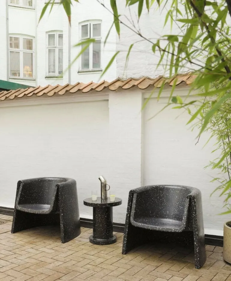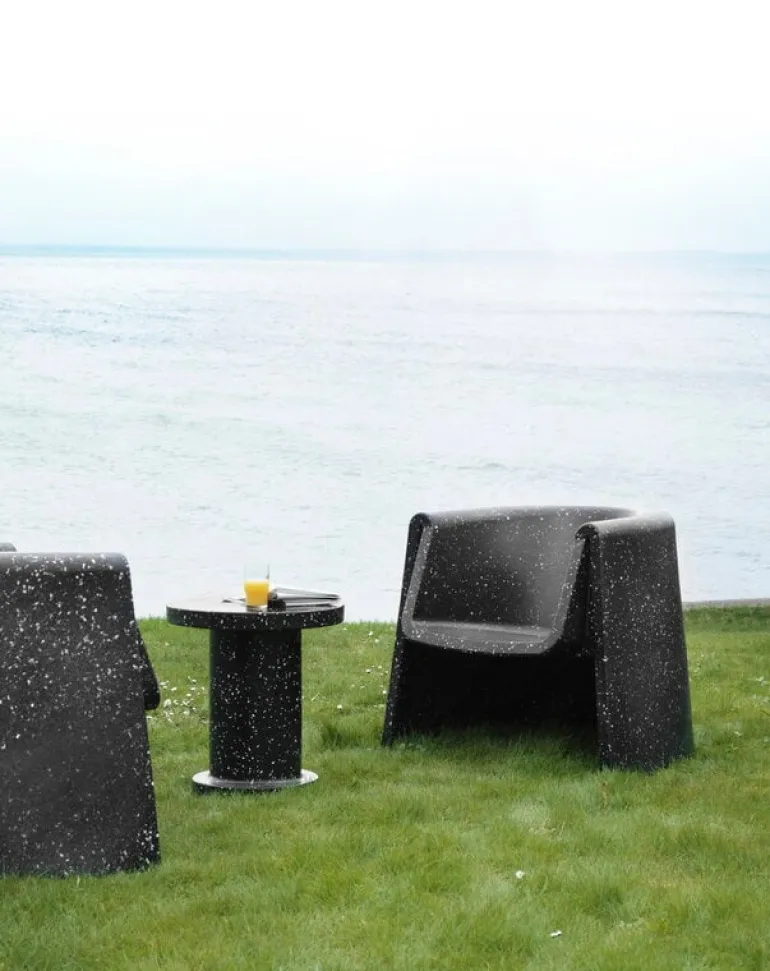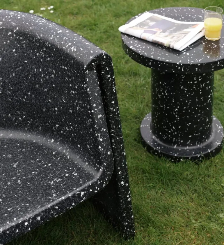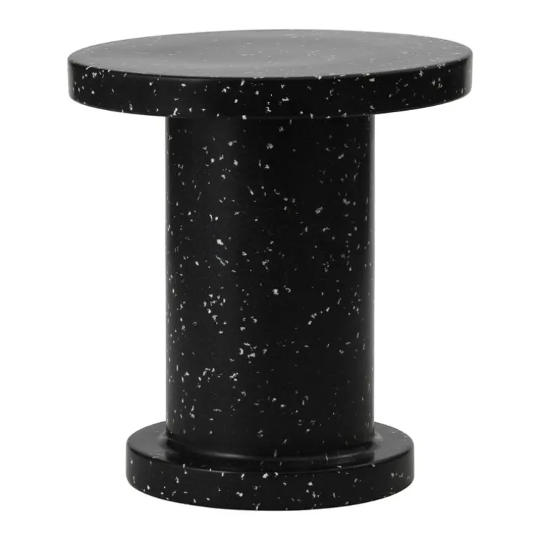 Sidobordet Bit från Normann Copenhagen ingår i Simon Legalds omtyckta kollektion Bit, som framför allt är känd för sina ljuvliga, mångsidiga pallar. Precis som pallen är bordet en distinkt möbel med flera användningsområden. Den kan användas som sidobord i vardagsrummet eller som blomsterbord. Bordet är tillverkat av återvunnen plast, och dess monolitiska form livas upp av en prickig yta som kommer från materialet: under tillverkningsprocessen smälter färgglada plastbitar samman på olika sätt i varje bord. Därför är varje bord unikt. Bit-bordet kan användas både inomhus och utomhus, eftersom det tål temperaturer från -10 °C till +50 °C.
