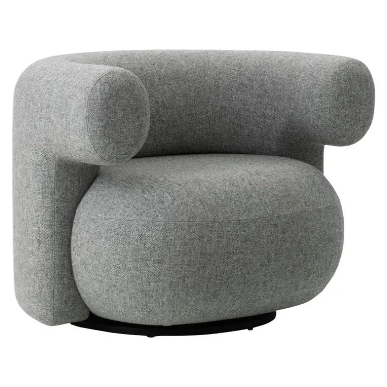 Normann Copenhagens Burra-fåtölj ger en härlig rundhet och omslutande komfort till alla utrymmen där avkoppling är viktigt. Denna skulpturala fåtölj kombinerar en rund sits och böjda armstöd, som vaggar den som sitter i en mild omfamning. Den här Burra-stolen, klädd i en ullblandning, kommer med en snurrfunktion – vilket gör det enkelt att vrida sig mot en samtalspartner eller en fin utsikt.