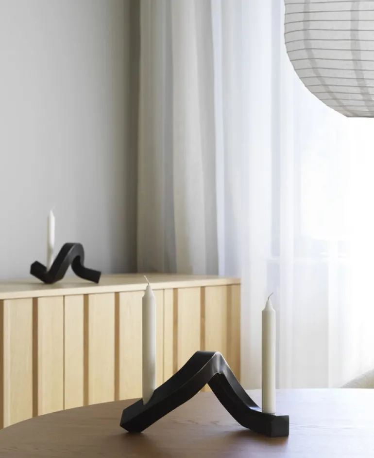 Normann Copenhagens Crooked One har ett vridet utseende och skapades av den danske modeinfluensern Uffe Buchard. Buchard hämtade inspiration till ljushållaren från olika håll, inklusive design-, konst- och arkitekturvärlden. Den skulpterade och moderna Crooked One förhöjer varje bordsdukning som ett dekorativt objekt, men kan även kombineras med andra ljusstakar från kollektionen Crooked för att skapa ett fascinerande, böjt arrangemang.